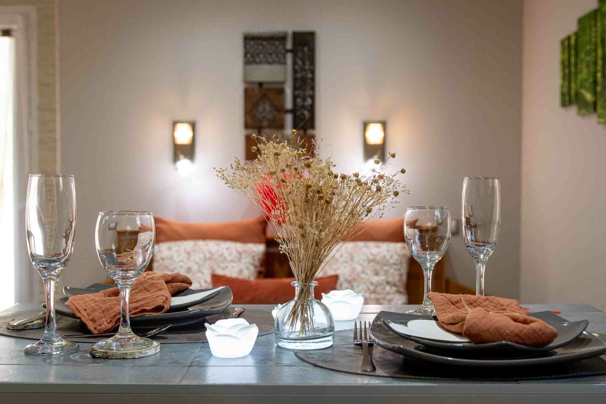 Ambiance calme et cosy : Nos studios sont conçus pour vous offrir confort et intimité.