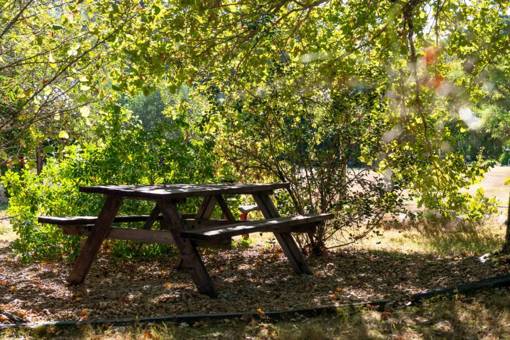 Vous découvrirez également notre coin pique-nique avec sa grande table sous les arbres ou encore le banc idéal pour la lecture à l’ombre, face au parc…