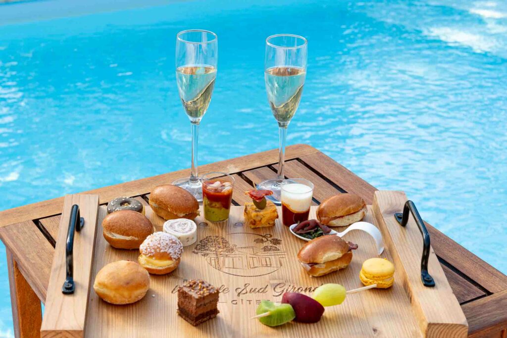 À moins d’une heure de Bordeaux, nos deux studios accueillent les couples dans un environnement paisible, avec jacuzzi privatif, terrasse indépendante et ambiance différente selon le studio choisi. Vous y découvrirez les espaces intérieurs, les équipements bien-être, les extérieurs, la piscine chauffée et les différents détails qui composent cette parenthèse à deux.
