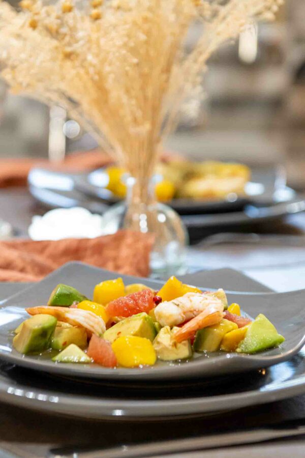Repas traiteur livré pour une personne (à réserver 72 heures avant le début du séjour. Entrée – plat – dessert).