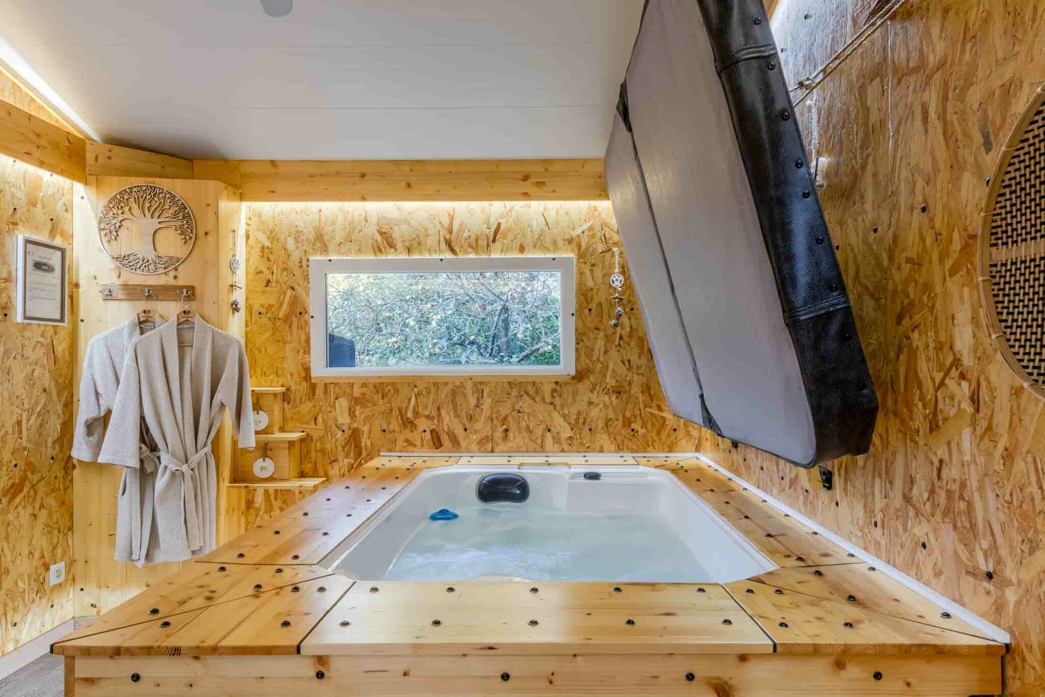 Avec son lit king size 160 cm et son jacuzzi privatif dans une cabane en bois cosy, c’est l’endroit idéal pour une nuit insolite ou un week-end romantique près de Bordeaux.