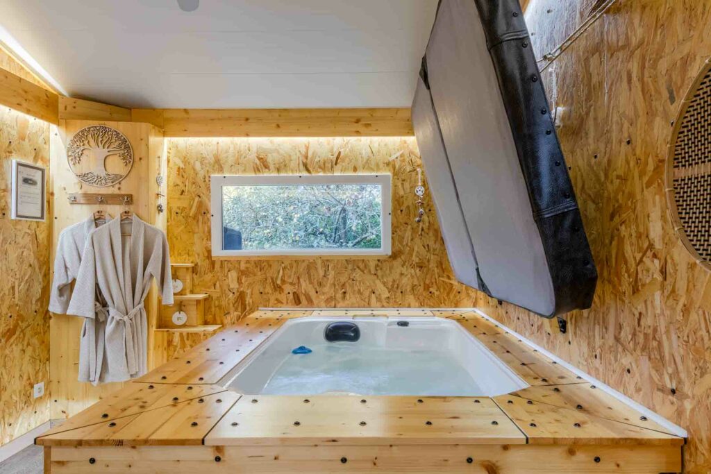 Studio Bâbord : jacuzzi dans une cabane en bois
